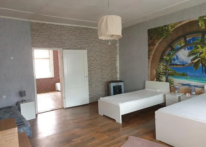 Situato a una distanza di 200 metri da St. Marien, Einfache Monteurwohnung In Bleicherode, di 104 m^2, comprende un balcone e una zona pranzo con vista sul giardino.